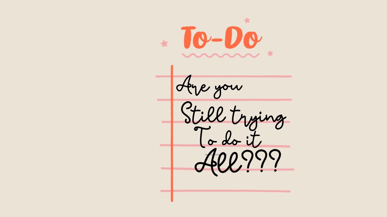Standing still for a moment blessed me the other day. I heard the Holy Spirit ask, "are you still trying to do it all?"